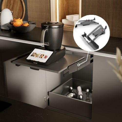 czytaj więcejZyskaj łatwy dostęp do wszystkich przechowywanych rzeczy w kuchni. Dzięki innowacyjnemu rozwiązaniu, które łączy ruch obrotowy i wysuwany, nawet te trudno dostępne miejsca stają się w pełni dostępne. Idealne dla małych kuchni i wysokich szafek!