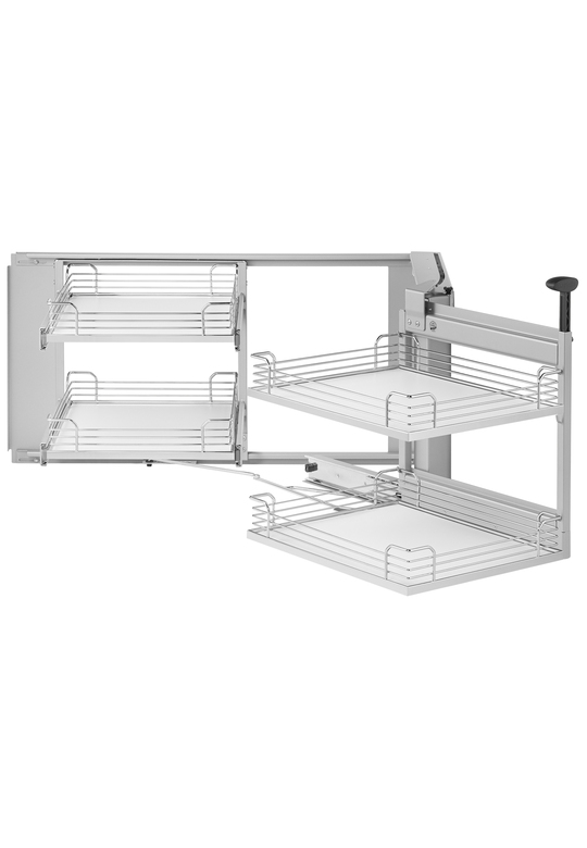 Magic Corner Comfort ARENA Classic to pionierski system narożnikowy, który łączy funkcjonalność i komfort użytkowania, przekształcając kuchenne narożniki w praktycznie zagospodarowane spiżarnie. Solidne półki są idealne do przechowywania zarówno dużych garnków, jak i małych urządzeń AGD oraz zapasów spożywczych, a regulacja wysokości przednich półek zapewnia wygodę użytkowania, co czyni je idealnym rozwiązaniem dla każdych kuchni.
