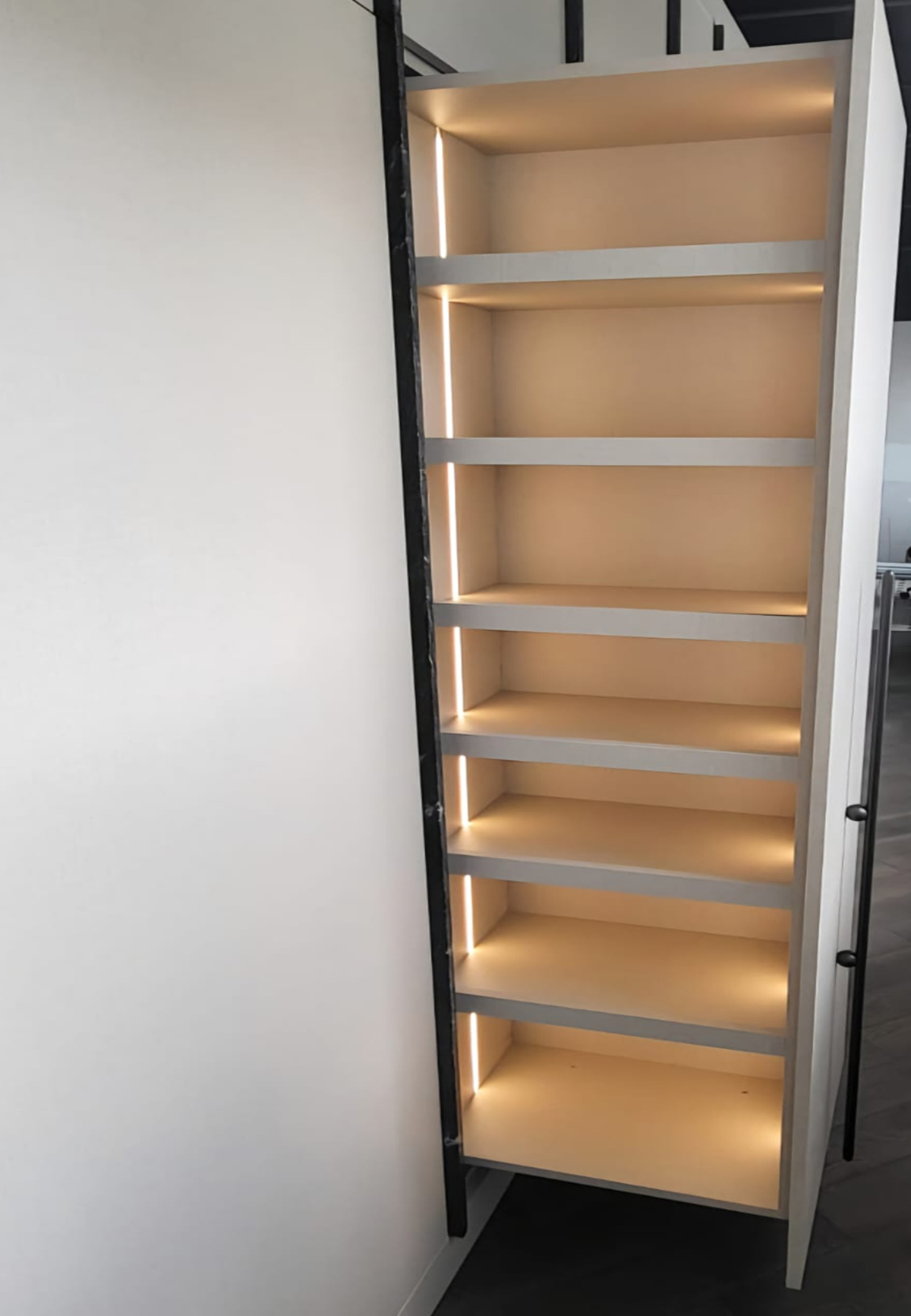 Dzięki prowadnicom do indywidualnych konstrukcji 390/150 kg zyskujesz możliwość optymalnego zagospodarowania trudno dostępnych miejsc, zwłaszcza głębokich szaf, ale również w nietypowej wnęce w kuchni, garderobie czy pod schodami.