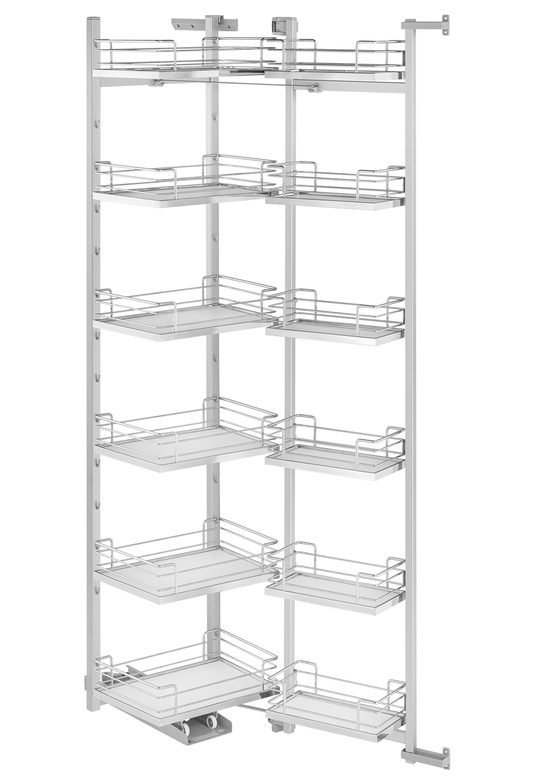 TANDEM III z koszykami w linii ARENA Classic to okucie do szafki wysokiej, kuchennej, służy do przechowywania produktów suchych. Dzięki przemyślanej konstrukcji i zastosowaniu inteligentnej technologii wysuwania, system ten umożliwia przechowywanie wszystkich zapasów spożywczych w jednej szafce, zapewniając jednocześnie łatwy dostęp i doskonałą widoczność produktów.