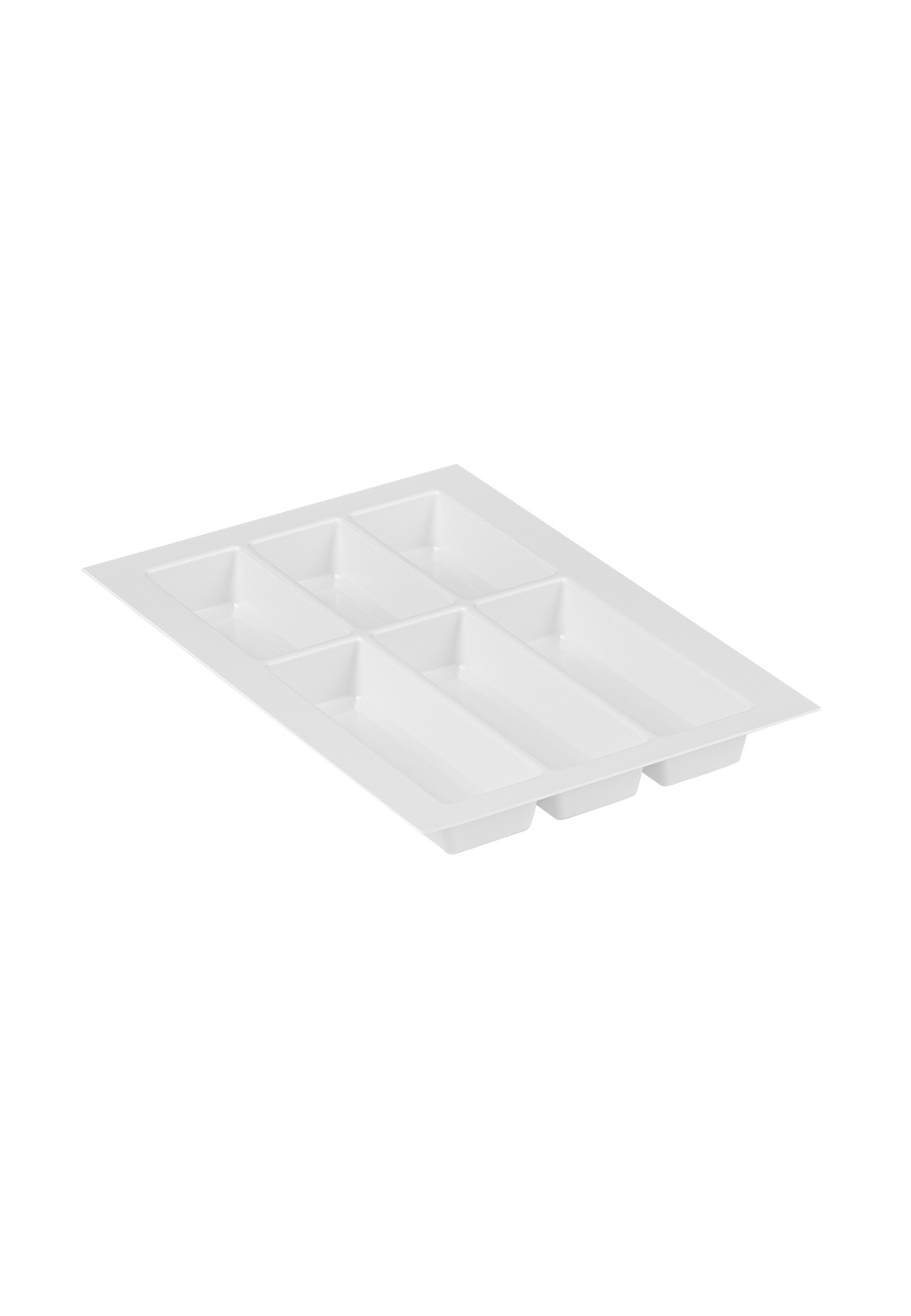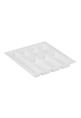 Wkład Classico na sztućce i akcesoria kuchenne w kolorze białym. Wkład pasuje do szuflad o szerokości frontu 400 mm i głębokości prowadnicy 500 mm. Wkład ma po szerokości i po długości szerszy zapas, który umożliwia samodzielne docięcie wkładu do niestandardowych wymiarów szafki z szufladami. Wkład do szuflady wykonany jest z bardzo dobrego jakościowo, wytrzymałego tworzywa sztucznego, bezzapachowego, o grubości 2 mm. Solidny, odporny na odkształcenia i pęknięcia, jest bardzo lekki. Jest łatwy do czyszczenia, gładka powierzchnia wkładu nie „przyjmuje brudu”, nie widać na niej smug czy zarysowań. Jest bardzo estetycznie wykonany i bardzo ładnie wygląda w każdej szufladzie nie tylko w nowoczesnych meblach ale również w szufladach bardziej tradycyjnych. Praktyczny wkład do szuflady pozwoli na utrzymanie porządku i szybkie odłożenie umytych sztućców na właściwe miejsce. Przy podanej szerokości do dyspozycji mamy 6 komór. Trzy mniejsze komory posłużą do przechowywania łyżeczek, widelczyków czy innych drobnych akcesoriów np.: zaparzacza do herbaty, trzy większe komory świetnie zorganizują przestrzeń na łyżki stołowe, noże i widelce. Wymiary wkładu: