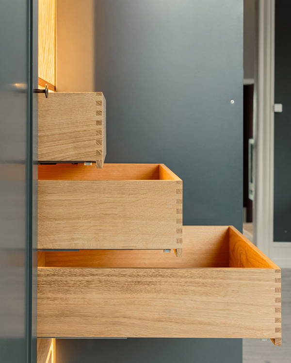 - estetyka, którą chcesz eksponować – piękno tych szuflad zachęca, by zostawić je otwarte.