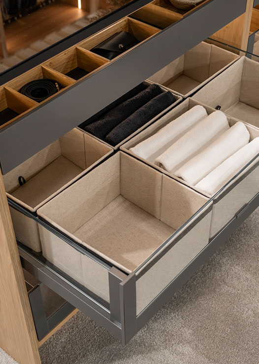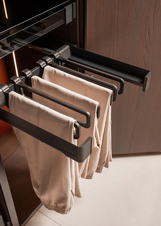 Każdy element garderoby zasługuje na swoje miejsce. System CONERO SET umożliwia przechowywanie spodni w sposób przejrzysty i praktyczny, ułatwiając codzienny wybór stylizacji.