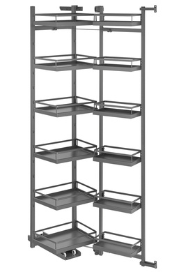 Cargo Dispensa Liro z drewnem z sześcioma koszami, jest przeznaczone do szafki o szerokości 30 cm i idealnie komponuje się w meblach kuchennych. Proponujemy umieścić je tuż obok lodówki, po to aby zgromadzone produkty były zawsze pod ręką i w jednym miejscu. Szafka z systemem cargo Dispensa bez problemu pomieści duże ilości zapasów spożywczych i pozwoli wygodnie je poukładać - tworząc praktyczną spiżarnię. Po wysunięciu Dispensy z szafki otrzymujemy doskonały dostęp do wszystkich umieszczonych produktów z obu stron.