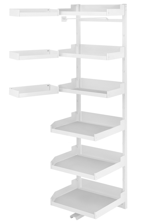 Spiżarnia Pleno Maxi Plus Liro posiada kombinację wielkości półek co daje znakomite wykorzystanie przestrzeni, łatwy dostęp i doskonały przegląd zgromadzonych zapasów. System został podzielony na dwie strefy przechowywania, górna jako spiżarnia np. na artykuły spożywcze czy drobne naczynia, kubki i szklanki, natomiast dolna z dużymi półkami na przechowywanie większych przedmiotów jak np. małe AGD lub talerze.