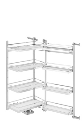 Cargo Pleno Maxi Plus Liro z montażem na lewą stronę, w kolorze białym to wysuwana spiżarnia do wysokiej szafki kuchennej o szerokości frontu 600 mm. Idealnie nadaje się do centralnego przechowywania żywności lub jako szafka na zastawę stołową lub artykuły spożywcze.