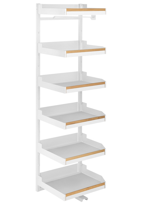 Spiżarnia Pleno posiada w komplecie 6 półek, wiszących na haczykach rozmieszczonych co 10 cm, a użytkownik sam może zmienić ich rozmieszczenie. Pleno pozwala nam na maksymalne wykorzystanie przestrzeni, łatwy dostęp i przegląd umieszczonych w nim produktów.