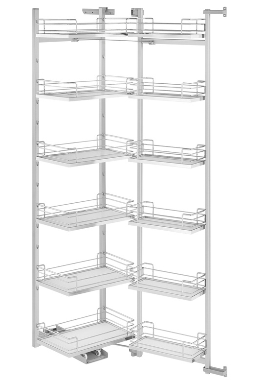 W porównaniu z tradycyjnymi szufladami oraz półkami wysuwanymi czy wyjmowanymi, system TANDEM III zapewnia aż o 100% lepszą widoczność zawartości. Po otwarciu drzwi produkty rozmieszczają się pomiędzy półkami regałowymi i drzwiowymi, które automatycznie wysuwają się do przodu. Wszystko staje się dobrze widoczne i łatwo dostępne, a cały mechanizm można obsłużyć jedną ręką. Nawet artykuły umieszczone w głębi szafki automatycznie przesuwają się do przodu, co ułatwia utrzymanie porządku i zwiększa komfort użytkowania.