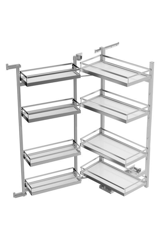 Po otwarciu drzwi system automatycznie rozdziela produkty między półki regałowe i drzwiowe, a tylne elementy wysuwają się do przodu, zapewniając szybki dostęp i pełny wgląd w zawartość. Wewnętrzne koszyki o trapezowym kształcie mają wymiary: dłuższy bok 500 mm, krótszy 470 mm, głębokość 260 mm. Koszyki drzwiowe (III generacja) mają formę prostokąta o szerokości 430 mm i głębokości 150 mm.