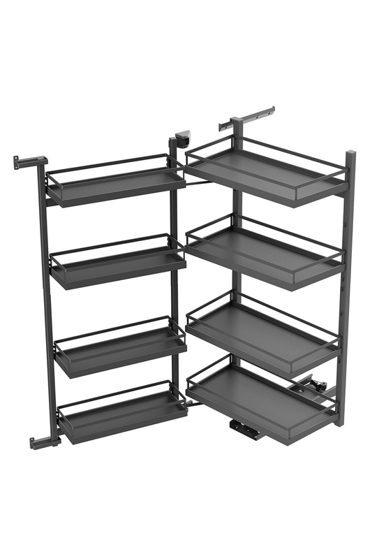 Wyróżnia go elegancka antracytowa kolorystyka, która doskonale komponuje się z nowoczesnymi aranżacjami kuchni. Matowe, ciemne wykończenie nadaje całości wyjątkowego charakteru, podkreślając wysoką jakość wykonania i estetykę systemu. To idealne połączenie funkcjonalności i designu — zarówno praktyczne, jak i stylowe.