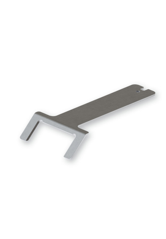Aby zdemontować okucia, należy włożyć klucz w wyznaczony punkt dostępu w mechanizmie. Narzędzie umożliwia konserwację, wymianę elementów lub rekonfigurację systemu bez ryzyka uszkodzenia drzwi czy prowadnicy. Jest niezastąpione podczas renowacji i serwisowania ukrytych mechanizmów przesuwnych.