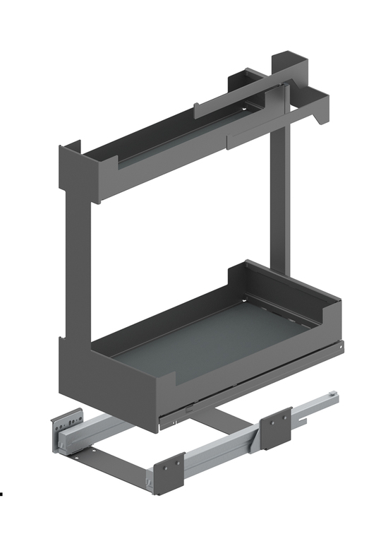 Pinello Inside Towel to nowoczesny system carga z wewnętrznym wieszakiem na ręczniki zamontowanym z lewej strony, wyposażony w pełen wysuw, przeznaczony do szafek dolnych z drzwiami na zawiasach. To rozwiązanie pozwala w pełni wykorzystać przestrzeń w strefie zmywania – także w szafkach częściowo zagospodarowanych, np. z filtrami do wody, stacjami uzdatniania lub podgrzewania.