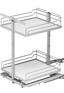 Dzięki przemyślanej, asymetrycznej konstrukcji górnej półki z prawej strony, system idealnie dopasowuje się do pojedynczej miski zlewu, pozostawiając wystarczająco dużo miejsca na wszystkie niezbędne akcesoria. Środki czystości, butelki, gąbki i sprzęt do sprzątania – wszystko znajdzie swoje miejsce i będzie zawsze pod ręką.