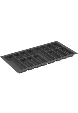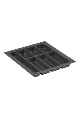 Wytłoczka posiada wyodrębnione komory w taki sposób że sztućce umieszczamy równolegle do frontu szuflady. Taki układ komór gwarantuje, że ostre przedmioty nie uderzają o krawędzie podczas otwierania szuflady. Ponadto w komplecie z wytłoczką znajdują się dodatkowe podziałki (3 długie i 9 krótkich), za pomocą których podzielimy długie komory na mniejsze odcinki. Wkład na sztućce z dodatkowymi podziałkami pozwoli na przechowanie nie tylko sztućców, ale również mątewek, szczypców, łopatek, czy dużych łyżek do mieszania potraw. Dzięki większej ilości podziałek przybory kuchenne nie będą mieszały się z sobą leżąc luzem w szufladzie, nie będą niszczyć jej dna, a przy okazji obijać się o siebie. Wkład do szuflady wykonany jest z dobrego jakościowo, wytrzymałego tworzywa sztucznego o grubości 2,5 mm, bezzapachowego. Odporny na odkształcenia i pęknięcia, bardzo lekki o gładkiej powierzchni. Jest łatwy do czyszczenia, wystarczy wyczyścić go wilgotną szmatką i gotowe, ale również nadaje się do mycia w zmywarce. Organizer SCOOP zabezpieczy dno szuflady przed zanieczyszczeniem i ewentualnymi zarysowaniami. Praktyczny wkład do szuflady pozwoli również na utrzymanie porządku i szybkie odłożenie umytych przedmiotów na właściwe miejsce. Do wkładu polecamy profil wykończeniowy pod sym. 07.999.B, który idealnie wypełnia ewentualne szczeliny między bokiem szuflady a wkładem (do dokupienia, nie wchodzi w komplet z wkładem). Ponadto jeśli potrzebujemy organizer podzielić na większą ilość mniejszych odcinków istnieje możliwość dokupienia dodatkowych podziałek, dodatkowe podziałki dostępne pod sym. 07.439.B.