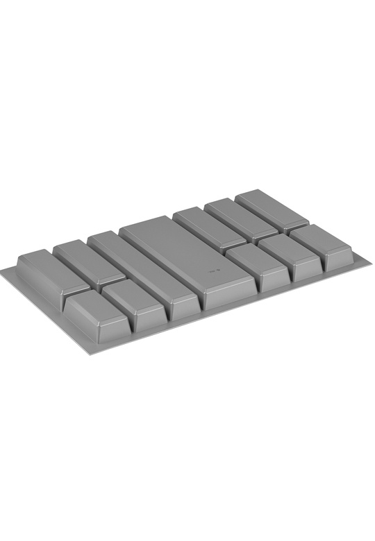 - 5x komory małe 170x93 mm (wymiar u góry komory), 140x43 mm (wymiar na dnie komory).