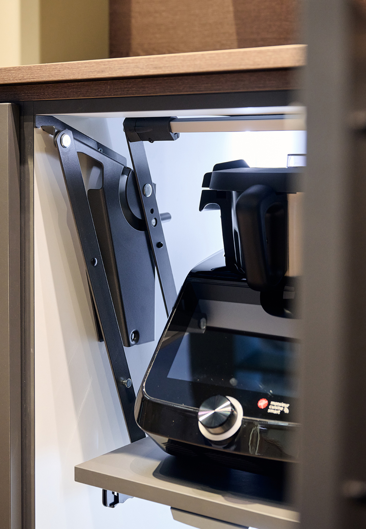CHEFS Table to innowacyjny mechanizm podnoszonego blatu roboczego, przeznaczony do dolnych szafek kuchennych o szerokości od 400 do 600 mm. Został zaprojektowany z myślą o kompatybilności z szeroką gamą urządzeń małego AGD dostępnych na rynku, takich jak multicookery, frytkownice beztłuszczowe, roboty kuchenne do krojenia i mieszania oraz inne stabilne urządzenia. Nie zaleca się stosowania sprzętów, które poruszają się samoczynnie podczas pracy – ze względu na ryzyko zsunięcia się z blatu.